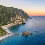 Den strandnära Popii Al Mare Appartamento In Villa Storica Fronte Mare Con Wifi E Aria Condizionata, Arredamenti Di Pregio E Giardino Riva Trigoso, som vetter mot havet, har ett strandnära läge mindre än 5 minuters promenad från Torre di Punta Baffe.